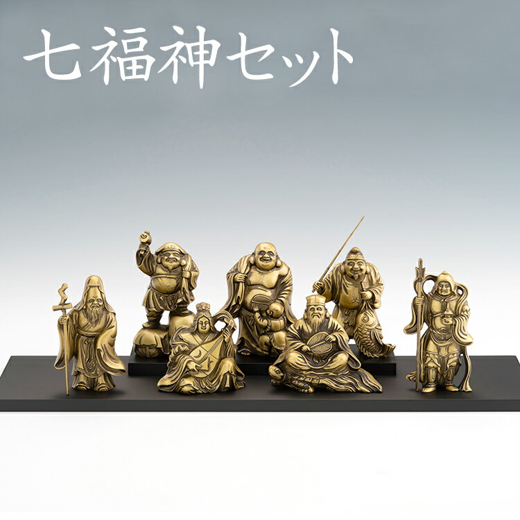 縁起物 置物 七福神〔飾り台付き〕シルキーゴールド 日本製 送料無料【ging-156-GSG】高岡銅器 開運 風水 無病息災 商売繁盛 古美金調 七福神の置物 オブジェ 開運招福 除災招福 開運祈願 金運 厄除け 新築祝い ギフト インテリア 玄関 リビング プチ神様 縁起 縁起もの