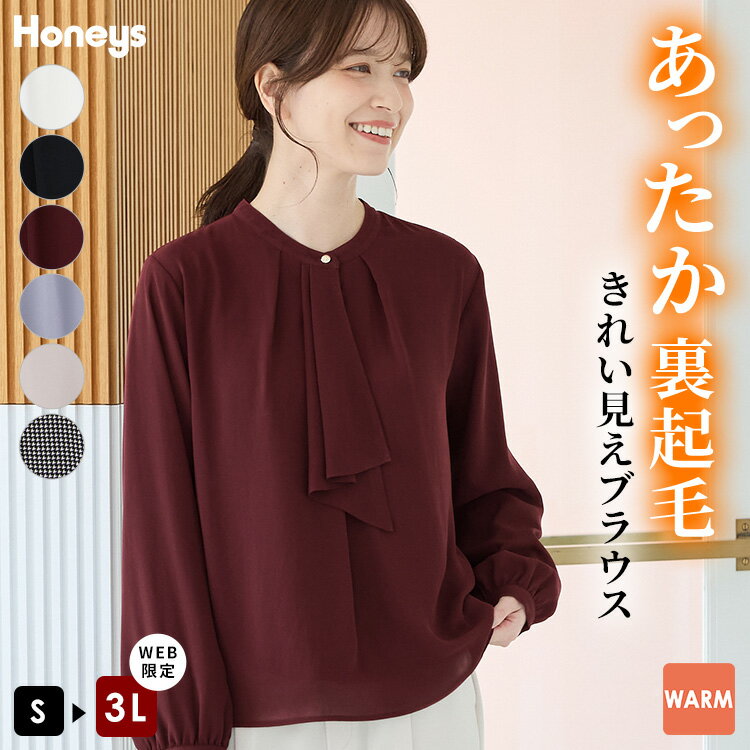 ★★最大2000円OFFクーポン配布中★★【WEB限定】トップス ブラウス 長袖 ハニぽか あったか 大きいサイズ オフィス きれいめ ボウタイ レディース Honeys ハニーズ 【褒められ】裏起毛ボウタイブラウス