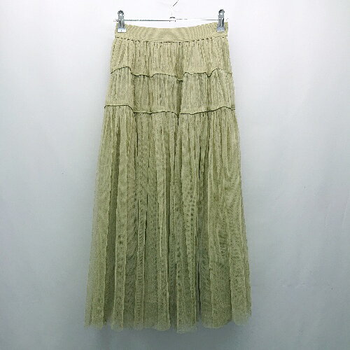 ◇ GLANCE グランス ウエストゴム 裏地 レース ギャザー 薄手 ひざ丈 フレア スカート サイズ38 グリーン レディース E 【中古】