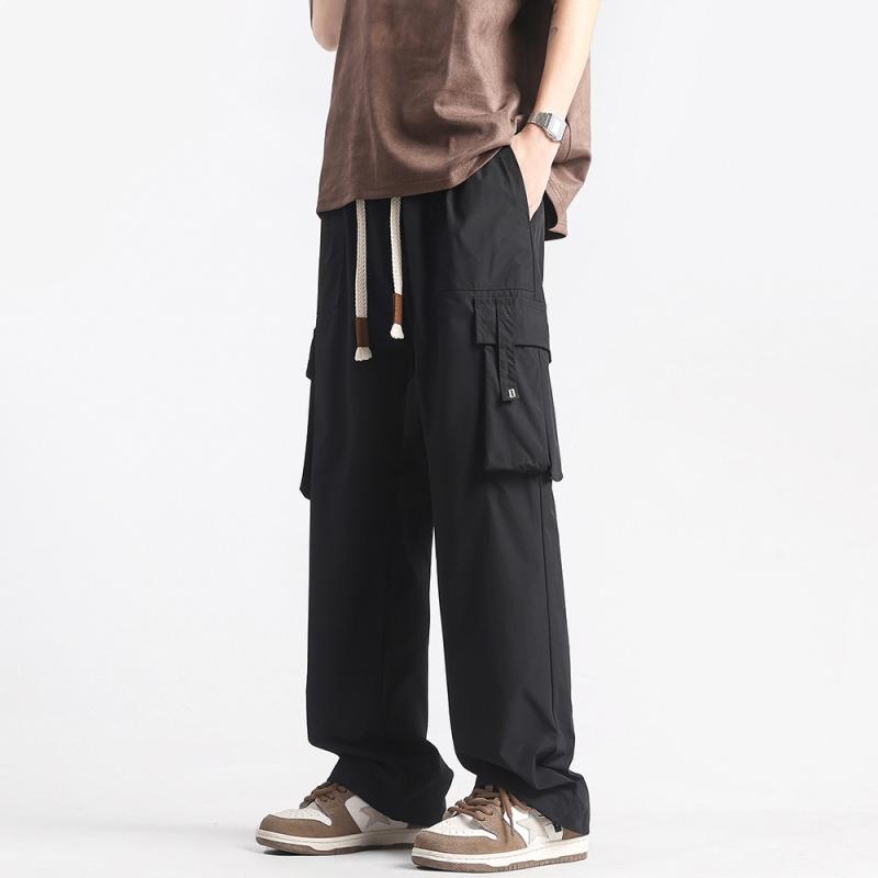 パンツ 男性用 麻 リラックス ストレート カーゴパンツ 黒 カーキ色 緑 部屋着 普段使い