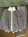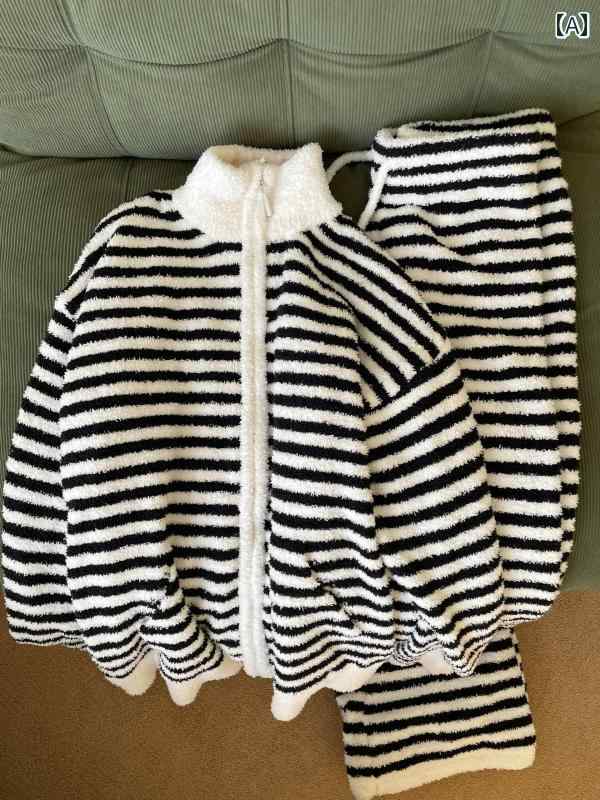 ストライプ パジャマ スウェット Sin Glee 韓国 シンプル ストライプの ハーフ エッジ ベルベット パジャマ レディース 冬 厚手 スタンドカラー ホームウェア 大きいサイズ スーツ