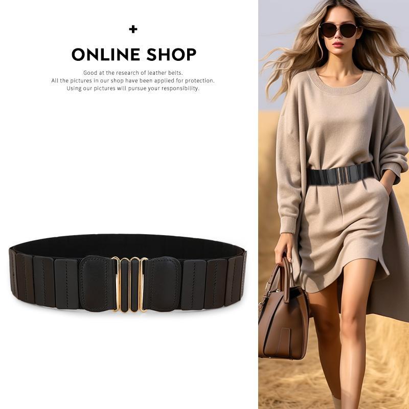 レディース ベルト チェーン 女性用 ウエスト ベルト 革 トップレイヤー 牛革 ブラック ファッション 装飾 セーター ドレス ウィンドブレーカー ダウン ジャケット