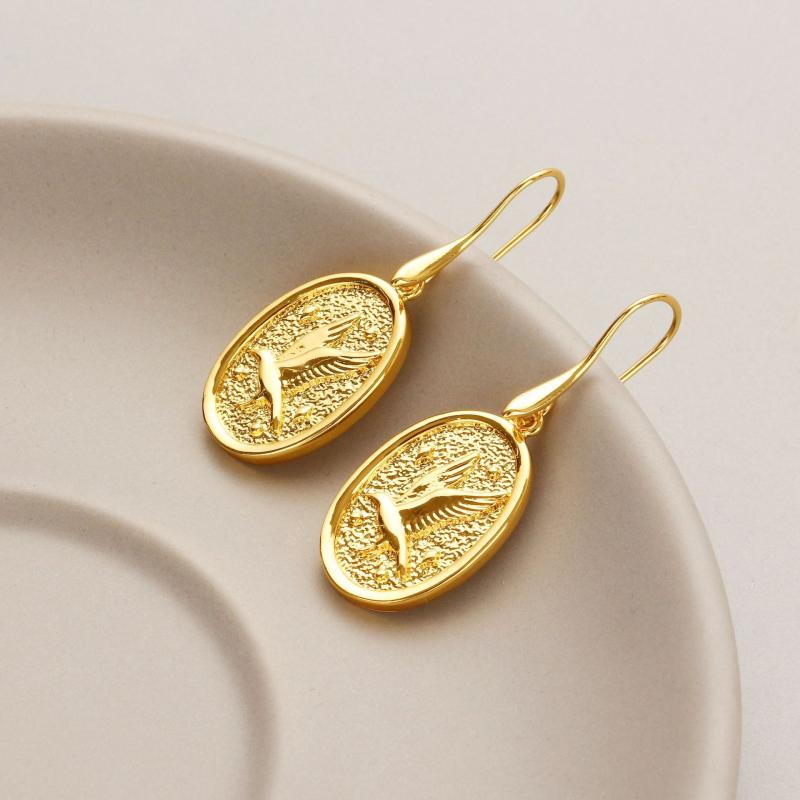 イヤリング レディース バードモチーフ ゴールド エレガント ヴィンテージ風 レトロ アニマル 動物 鳥型 楕円 メタル 金属 アレルギー対応