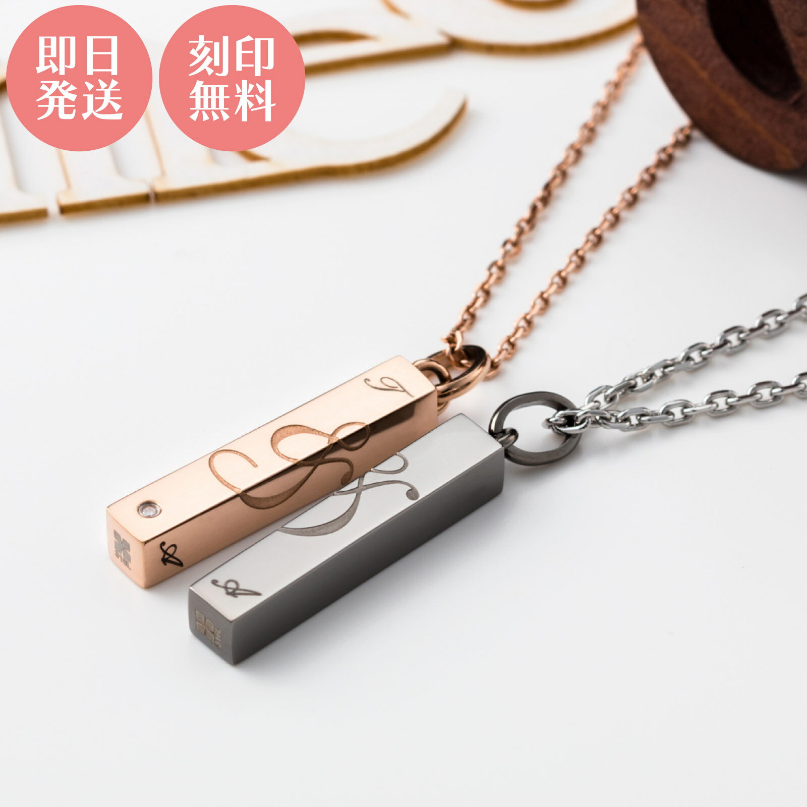 ペアネックレス ステンレス イニシャル刻印無料 名入れ アレルギー対応 カップル 2本セットダイヤモンド 大人 シンプル ブランド アンド & white clover 4SUP055GO&4SUP055BK クリスマス 記念日 誕生日 ホワイトデー プレゼント