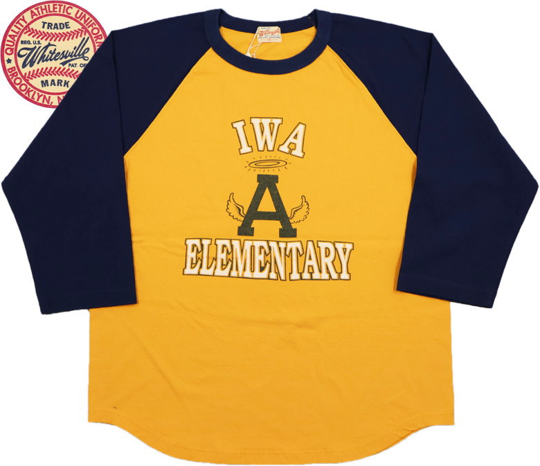 Whitesville/ホワイツビル 18/- BASEBALL T-SHIRT W/PRINT ベースボールTシャツ/7分袖ラグランベースボールTシャツ/7分袖カットソー 156) GOLD×NAVY(ゴールド×ネイビー)/Lot No. WV69527