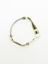 ブランド ジルベール・ジルベール 品 名 ブレスレット 品 番 gil110118 展開色 ゴールド×ネイビー 素 材 シルバー925 ゴム紐 From France シーズン ○関連商品、展開色リスト クリック! 商品紹介 シルバーと、ゴム紐のコンビブレスレットです。 棒状のシルバーを手首にあわせて自然と曲げてあり、フィットするように作られています。 更にフィット感を増すために紐の部分は伸縮性のあるゴムを使用しており、付けていても付けていないような軽さが魅力的です。 フック他メタルパーツは全てシルバーで、酸化加工を施し、燻した風合いとなっております。 カジュアルな雰囲気でありながらどこか品のある雰囲気にまとまっているのがジルベールならではのデザインです。 かさばらないので、袖口からさっとのぞかせられます。 【ブランド紹介】 レディースのアクセサリーを20年間、そしてメンズのアクセサリーを4年間作り続けたデザイナーのSylvie Gilbertは、2002年に自身のブランドGILBERT GILBERT(ジルベール・ジルベール)をスタートし、2003年10月には、パリの 35 Rue Francois Miron にショップをオープンさせた。 地元でもギャラリー街として有名で、多くのデザイナー達によって活気に溢れたLe Maraisの中心地に立地し、GILBERT GILBERTのアクセサリー全商品、そして鞄やベルトをメインとして扱っている。 また、現在はパリのボンマルシェ、プランタン、Publicis Drugstore等でも見る事が出来ます。シルバーを上手く使用したシンプルで品のあるジュエリーを中心に、日々何気なく身につけたくなるデザインのアクセサリーが多く揃っています。 サイズ詳細 サイズ FREE 【「ブレスレット」】 【smtb-kd】 【「服飾小物(ファッショングッズ)」】【「オールシーズン」】全体 全体 長さ 装着例