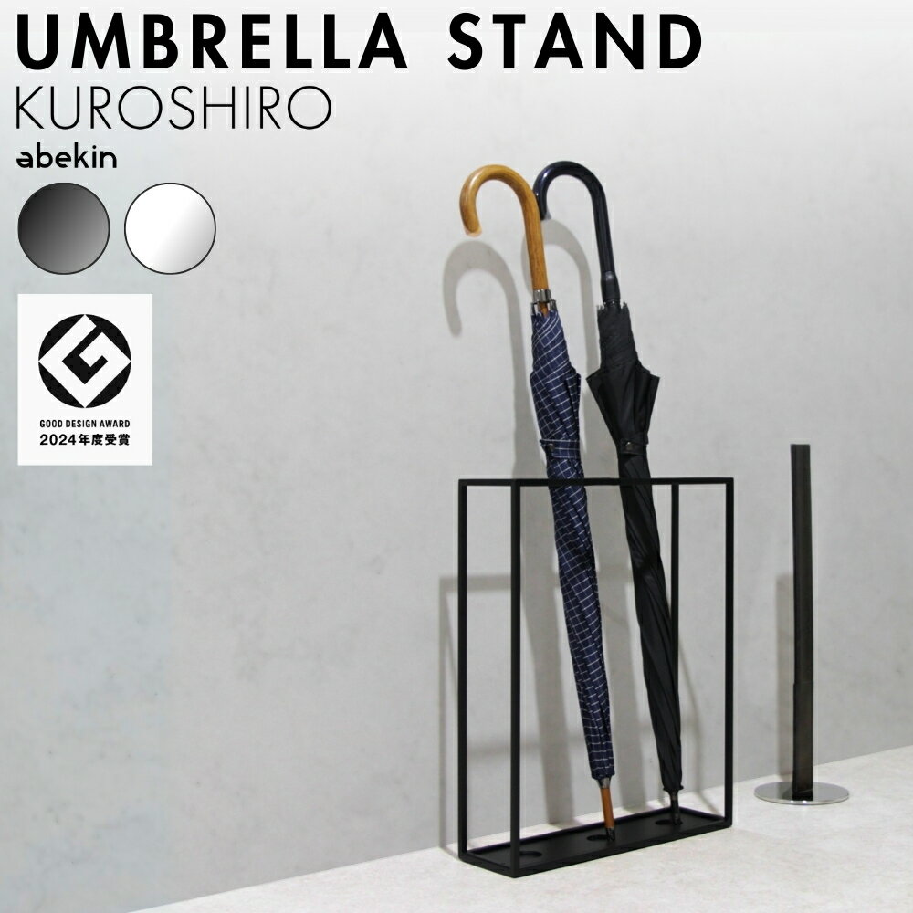 【グッドデザイン2024受賞】 KUROSHIRO アンブレラスタンド | ブラック ホワイト 傘立て 1~6本用 完成品 奥行12cm 玄関収納 玄関 エントランス 傘 日傘 黒 白 スリム おしゃれ 梅雨 シンプル ミニマル モノトーン abekin アイアン 金属製 スチール製 日本製 燕三条製