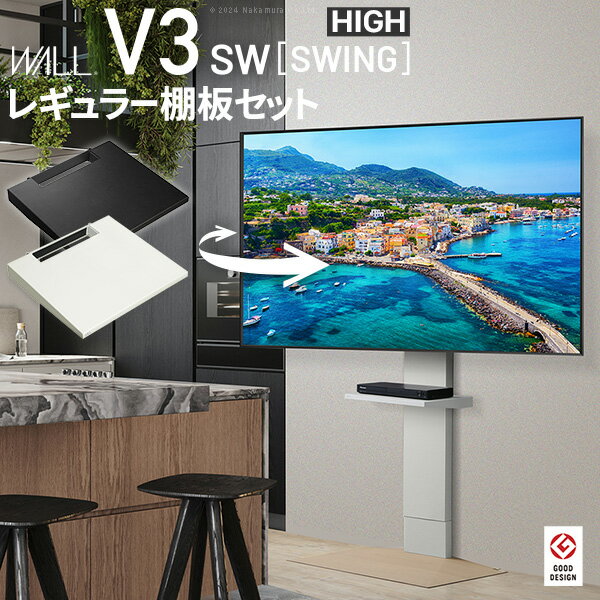 WALL テレビスタンド テレビ台 WALLインテリアテレビスタンドV3 SW ハイタイプ+棚板レギュラーサイズ 2点セット 32~80v対応 壁寄せテレビ台 テレビボード TVスタンド 左右首振り 背面収納 コード収納 ホワイト 白 ブラック 黒 ウォールナット ブラウン グッドデザイン賞受賞