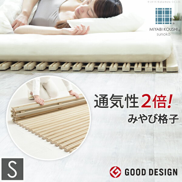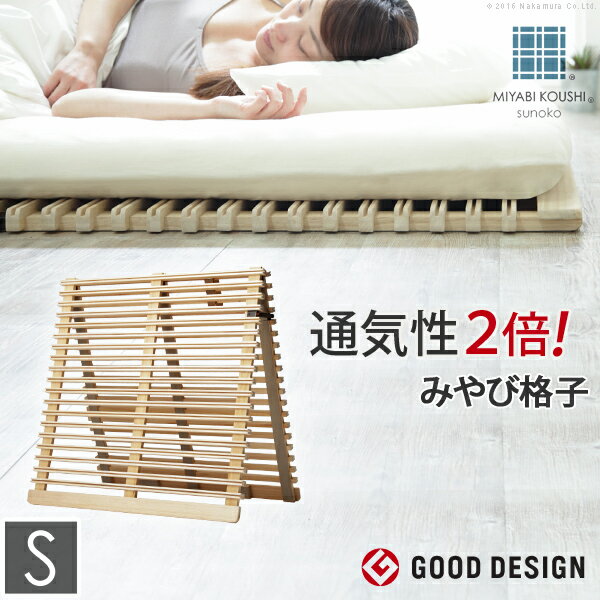 【2018年グッドデザイン賞受賞】 すのこベッド 折りたたみ シングル 通気性2倍で丸めて収納 「みやび格子」すのこベッド シングル 二つ折りタイプ 桐 天然木 すのこマット 布団干し 室内干し 省スペース 快眠 除湿 調湿 防カビ 梅雨対策 結露防止 通気性 軽量【mb】