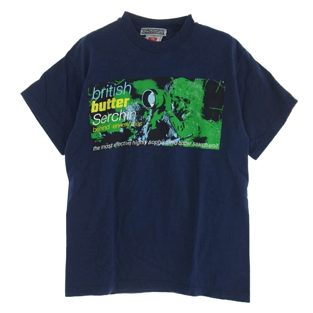 GOODENOUGH グッドイナフ 90s 初期 archive アーカイブ UKG トライバルタグ GDEH butter プリント Tee 半袖 Tシャツ ネイビー系 M メンズ【古着】【中古】