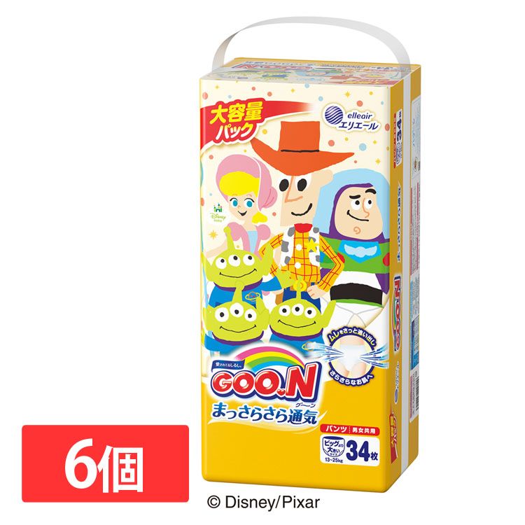 オムツ パンツ 送料無料 ディズニー おむつ ビッグ 6個セット グーン まっさらさら通気 BIGより大きい 13〜25kg 204枚 34枚×6 男女共用 大王製紙 紙 紙おむつ【iris_dl06】