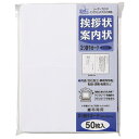 挨拶状、案内状の作成に。手書き、レーザー、インクジェットプリンタに対応しています。 ●挨拶状 ●規格:二折カード ●サイズ:縦155×横206mm ●1パック入数:50枚※専用WEBサイトより文例テンプレートを無料でダウンロードできます。 ●材質:紙 ●紙厚:約0.3mm ●坪量:260g/ ●郵便番号枠なし ●本体重量:0.345kg JAN:4902850237338