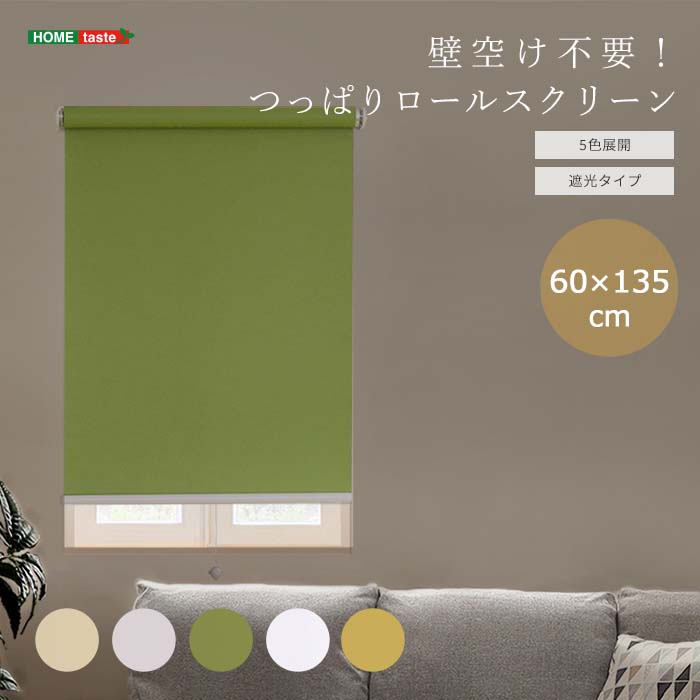 《HOMEtaste》つっぱり ロールスクリーン 遮光タイプ 幅60cm 丈135cm ネジ不要 1級遮光 つっぱり式 突っ張り ロールカーテン 目隠し カーテン スクリーン 間仕切り ブラインド 簡単取付 賃貸OK 工事不要 工具不要 おしゃれ 新生活 trs-s60