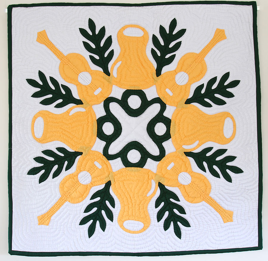 ハワイアンキルト タペストリー 本格手縫い 壁掛け ハワイアン キルト ハワイ インテリア 寝室 リビング 新築祝い 【ウクレレ 90X90cm】ハワイアン雑貨