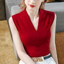 タンクトップ レディース 深Vネック コットン ノースリーブ トップス スリムフィット インナーウェア チェリーレッド ブラック ホワイト イエロー コーヒー色