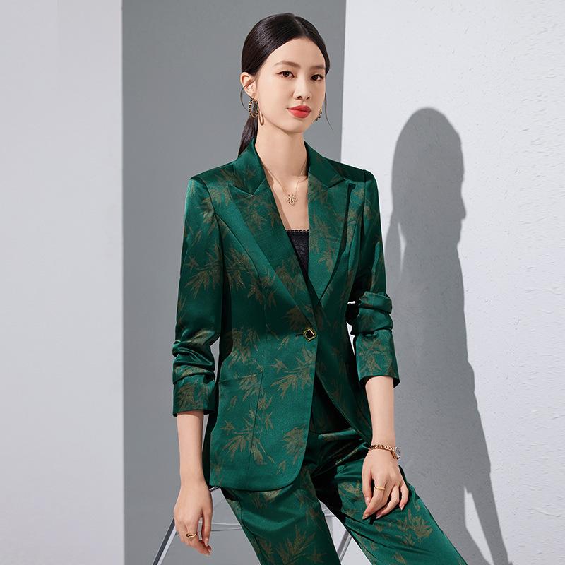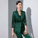 スーツ セットアップ レディース 女性用 春夏 エレガント 上品 ビジネス オフィス フォーマル 通勤 リクルート ジャケット ロングパンツ ポリエステル スパンデックス ダークグリーン ブラウン ブラック
