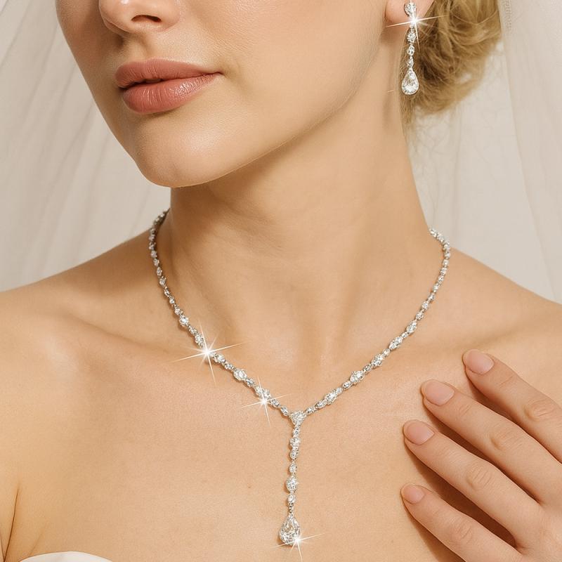 アクセサリー セット レディース 水滴 ティアドロップ ネックレス ピアス ラインストーン ジルコニア 揺れる ブライダル ウェディング 花嫁 結婚式 高級感 エレガント 上品 煌めく ファッション