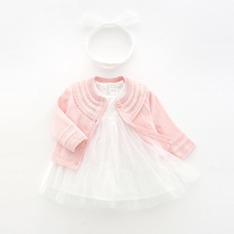 ベビー服 女の子 幼児 春秋 ニットカーディガン ワンピース セットアップ かわいい プリンセス コットン100% Aライン ピンク ホワイト 刺繍 チュール 百日祝い 誕生日 お宮参り セレモニー 結婚式 お出かけ