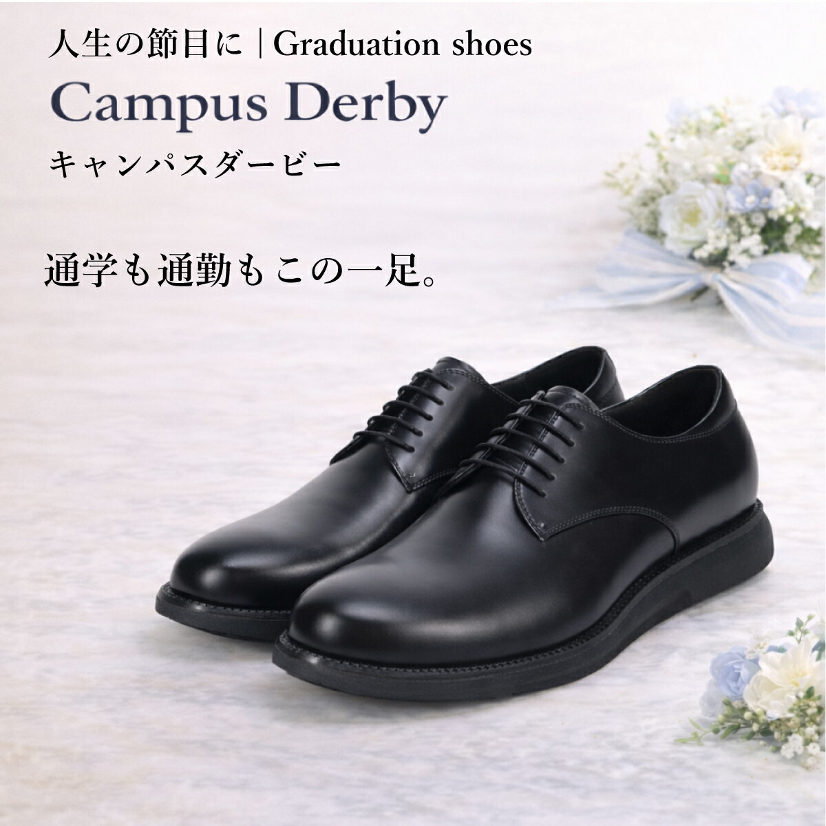 メンズダービーシューズ ブラック プレーンダービー 軽量 快適 シンプル Graduation shoes Campus Derby 入学式 卒業式 高校 学生 通学 式典 学校行事 上品 25230682 送料無料