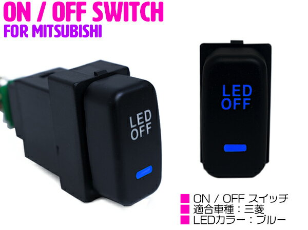 【三菱タイプ/ブルー】LEDランプ付き ON/OFF スイッチ スイッチホールカバー 三菱 アイシス HA1W グランディス NA4W デリカD:5 D5 CV1/2/5 【後付け LED スイッチ オン/オフ LEDスイッチ 電源 電装 USBスイッチ スイッチパネル 車 カー用品 内装用品】