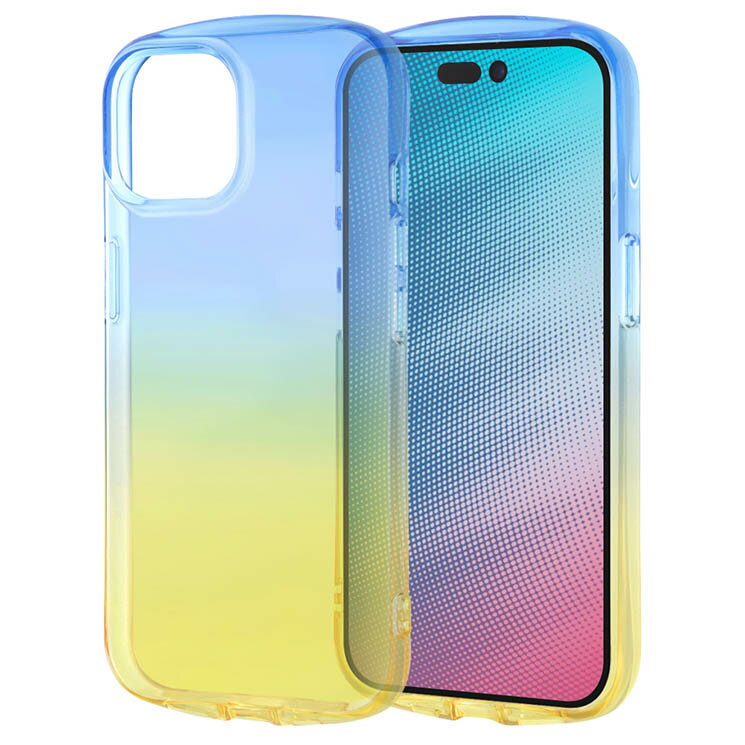 iPhone 14 Pro 耐衝撃 TPUソフトケース グラデーション GREA/ブルー/イエロー