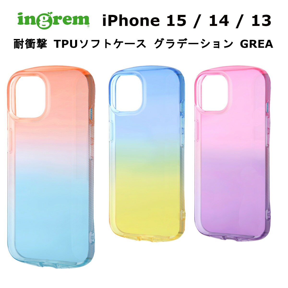 iPhone 15 / 14 / 13 国内メーカー品 ケース カバー iPhone15/14/13 アイフォン フィフティーン フォーティーン サーティーン アイホン スマホケース 耐衝撃 TPUソフトケース グラデーション GREA レッド/ブルー ブルー/イエロー ピンク/パープル かわいい オシャレ