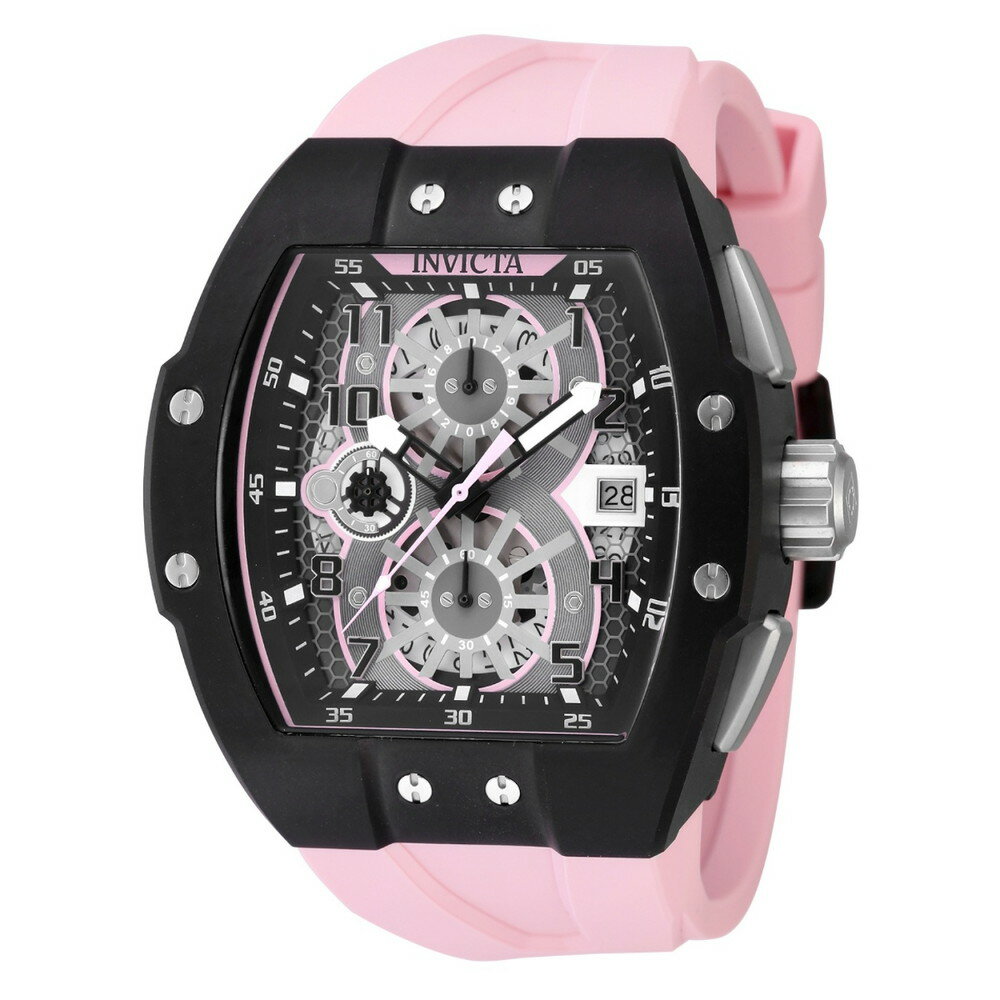 Invictaインビクタ Racing Gridlock メンズ 腕時計 クオーツ クロノグラフ 47mm ブラック ピンク シリコンベルト 50m防水 カレンダー