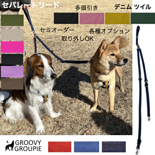 多頭用 【 二頭用 三頭用 】 切り離し可能 セパレート 犬用リード 【 中型犬 小型犬 超小型犬 】 優しい デニム ツイル リード 【 ダブルナスカン ダブルリード 長さ変更 オプション 】