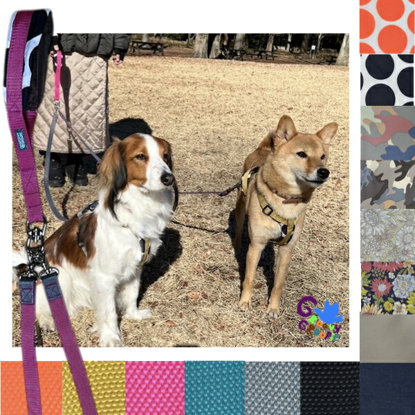 自由に自分だけデザインにカスタムできるリード 丈夫なPPテープで濡れても安心。 グリップ部分は厚いクッションで握りやすく、他は軽くお作りしました。PPテープは二重で強度があります。 縫い糸は表色に合わせてありますので 裏色には縫い糸がポイントカラーになります。 【犬種例】中型犬と小型犬、超小型犬 約20キロほどまで ポメラニアン・マルチーズ・トイプードル・ダックスフンド・ポメラニアン・豆柴・シーズー・マルチーズ・ミニチュアシュナウザー・パピヨン・パグ・ミニチュアピンシャー・ペキニーズ・イタリアングレーハウンド・ビジョンフリーゼ・狆・スピッツ・ノーフォークテリア 柴犬・フレンチブルドック・コーギー・ジャックラッセルテリア・キャバリア・ボーダーコリー・ビーグル・シェットランドシープドック・ボストンテリア・コッカースパニエル・ウィペット・甲斐犬・紀州犬・ミニチュアブルテリア・サルーキ・コーイケルホンディエなど 【素材】 グリップ PPテープ クッションと撥水ナイロン リード部分 丈夫な PPテープ 【オプションと長さ】 長さは120cm(通常)135cm(長め)150cm(かなり長め)からご選択いただけます。 通常の住宅街や街中は通常サイズ、公園など自由で危険がない場所では長いリードがおすすめです。長くなった場合はコントロールが難しく、ハーネスが抜けやすくなるため、対策(ダブルナスカンなど)、訓練をしてご使用ください。また、サイドグリップのオプションをつけてコントロールすることもできます。こちらは体高の高いわんこは下側、低いわんこは上側をお勧めいたします。足が絡んでしまう恐れがある場合は、上側をお勧めいたします。 延長オプションこちらから 【おすすめポイント】 1,グリップは厚手のクッションで柔らかく、握りやすい。 2.日本製。全て当店アトリエで手作りしております。(made in japan) 3.グリップ以外は軽くわんちゃんの負担が少ない。 4.雨や雪などで濡れても重くなりにくい、乾きやすい。 【ご注文の流れ】 こちらからご確認ください 【ご注意】ご了承いただいた上でご購入下さい。 必ずこちらをご確認ください。 【お勧め】お揃いのハーネスがございます。 お揃いのハーネス小型犬から中型犬はこちらから お揃いのハーネス超小型犬はこちらから