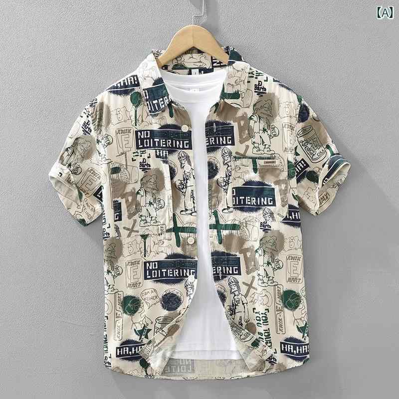 アロハシャツ 半袖 の ファッション の プリント 半袖 シャツ 男性用 夏用 カジュアル 文学的 ゆったり