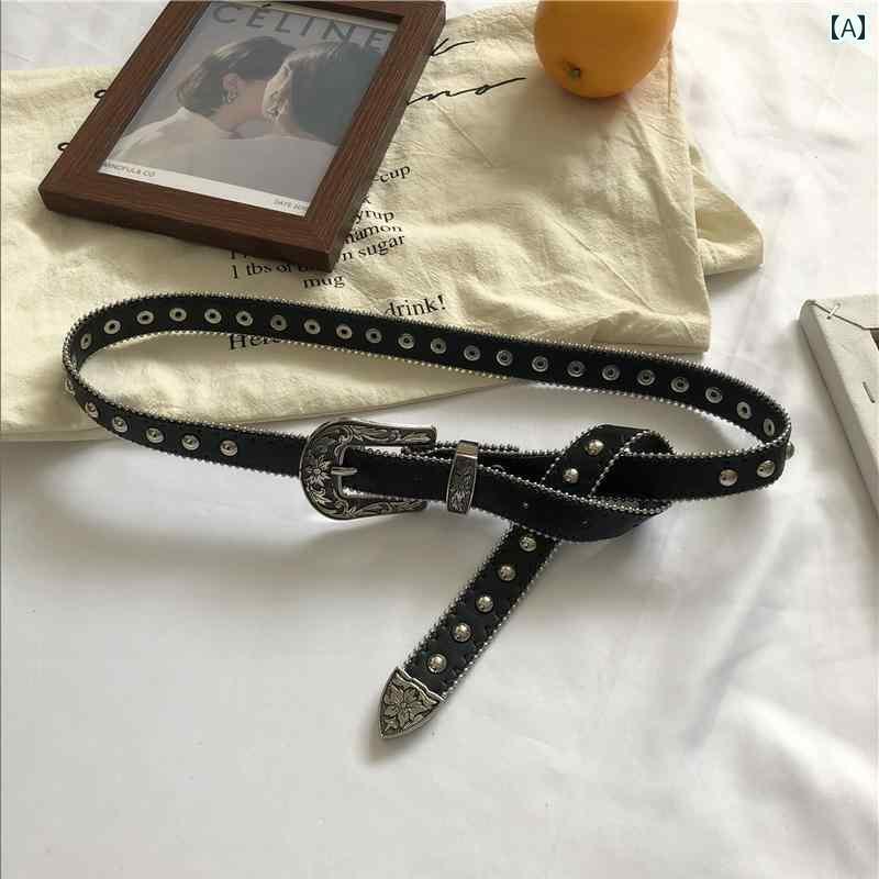 レディース ベルト カジュアル ネット スタイル ブラック ベルト レディース スタッズ 万能 ジーンズ シンプル 韓国 ファッション ガードル