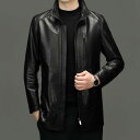 レザーコート メンズ 男性用 秋冬 本革 ゴートレザー スタンドカラー 立ち襟 ミドル丈 スリムフィット 英国風 ジップアップ カジュアル ビジネス 通勤 ブラック