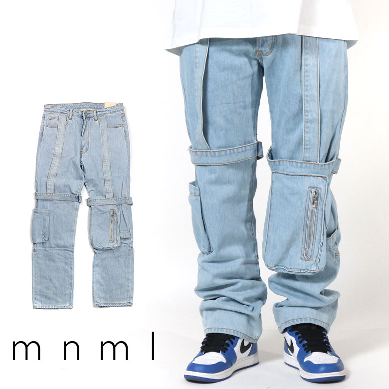【在庫処分40%OFF】mnml デニムパンツ ミニマル カーゴパンツ Gパン ジーンズ メンズ ブランド 大きいサイズ おしゃれ おすすめ V265 BAGGY DENIM ライトブルー 28 29 30 32 34 36 38
