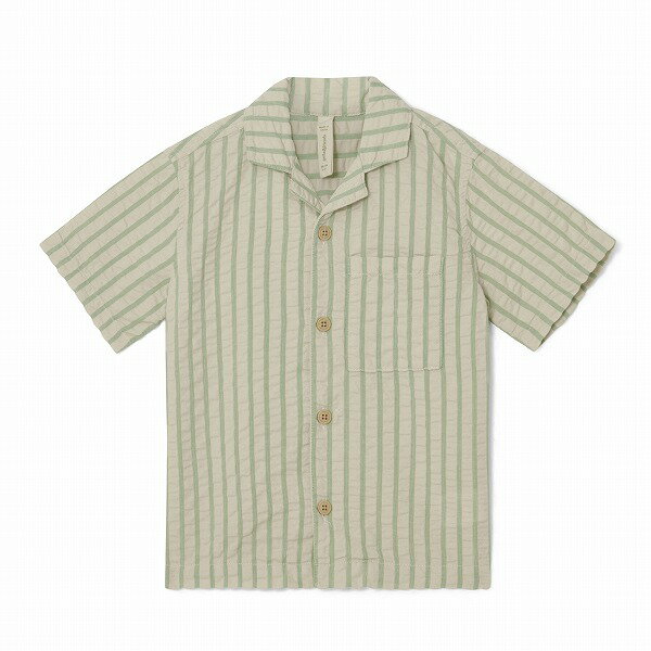 【SALE】garbo&friends ガルボアンドフレンズ Stripe Emerald Short Sleeve Shirt 半袖シャツ 子供服 キッズ シャツ 子ども服 コットン 女の子 男の子 ギフト プレゼント お祝い