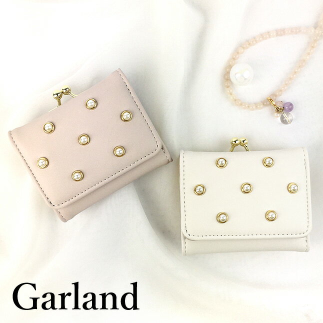キッズ 財布 女の子 wzv-305 Garland ガーランド パール ミニ口金財布 三つ折り財布 財布 パールかしめ付き コンパクト 小さめ キッズ ジュニア ティーン 小学生 中学生 高校生 女子 女の子 ガールズ パール ピンク アイボリー