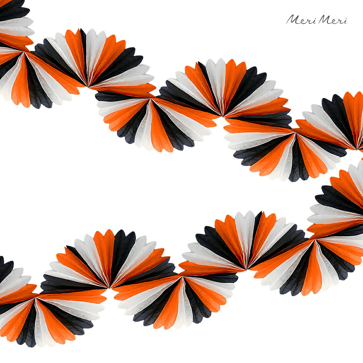 Black & Orange Stripe Honeycomb Garland 270166 ハロウィーン ハニカム ガーランド 黒・オレンジ・白の扇形の組み合わせは、パーティーテーブルや壁、またはポーチで印象的な外観になります。 紐を両端に引き出すだけで簡単に広がり、コンパクトなパッケージに折りたたんで来年のために保管することが可能です。 ・Metallic silver cord for hanging 付属の紐は吊るす際に調整に使っていただけます。 サイズ:全長約2.75m ※薄紙を使用し作られており、ノリの接着部分に黒のカラーが移っています。(画像6枚目参照)ヴィンテージ感のあるハロウィーンっぽさはありますが、ご了承いただける方のみ、ご購入ください。