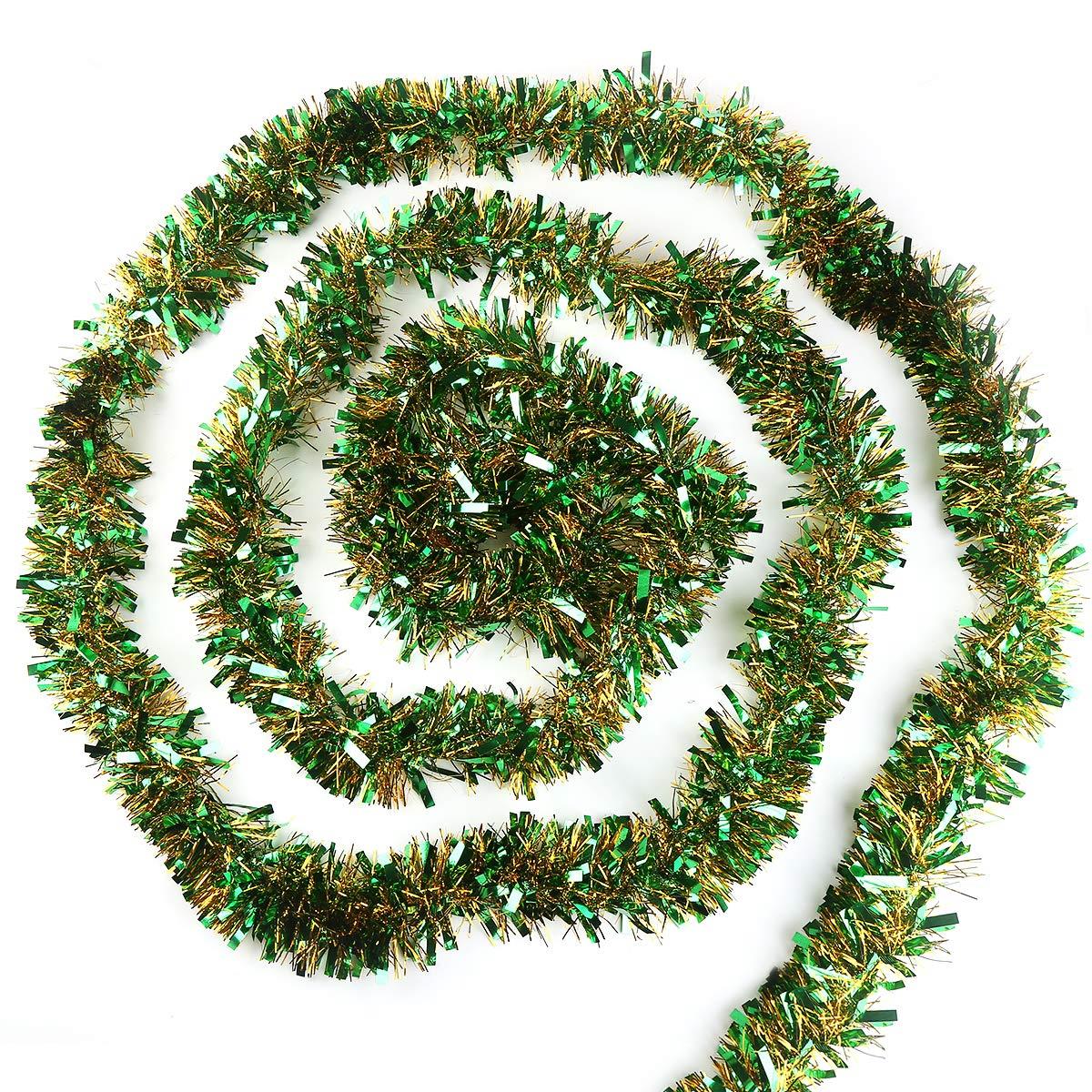 CCINEE クリスマス キラキラガーランド メッキモール 10m 誕生日 部屋 飾り 新年 キラキラモール クリスマスツリー ガーデン装飾籐 藤蔓 christmas tinsel garland パーティー イベント 結婚式 2次会 新年会 花輪 リボン 幼稚園 教室 カラーバー モール (グリーン+ゴールド)