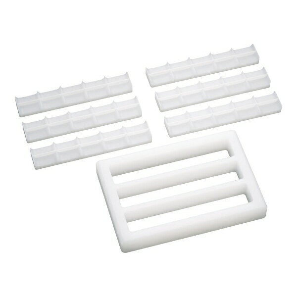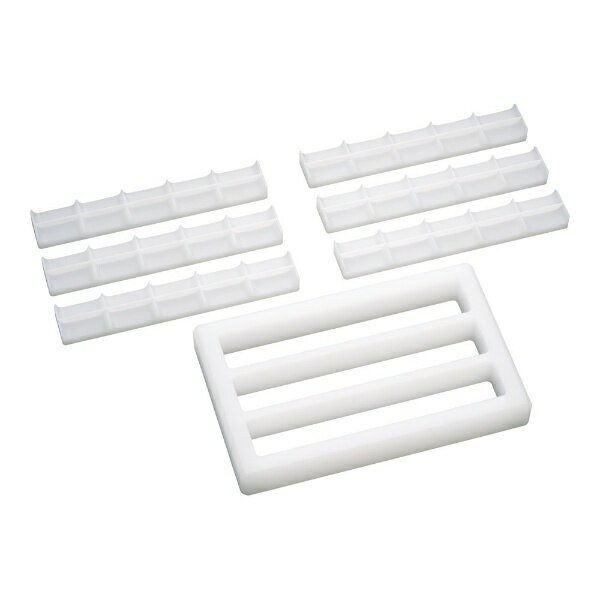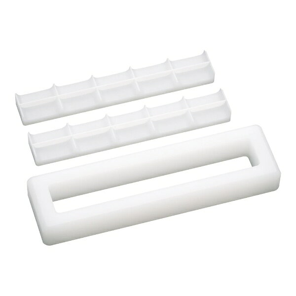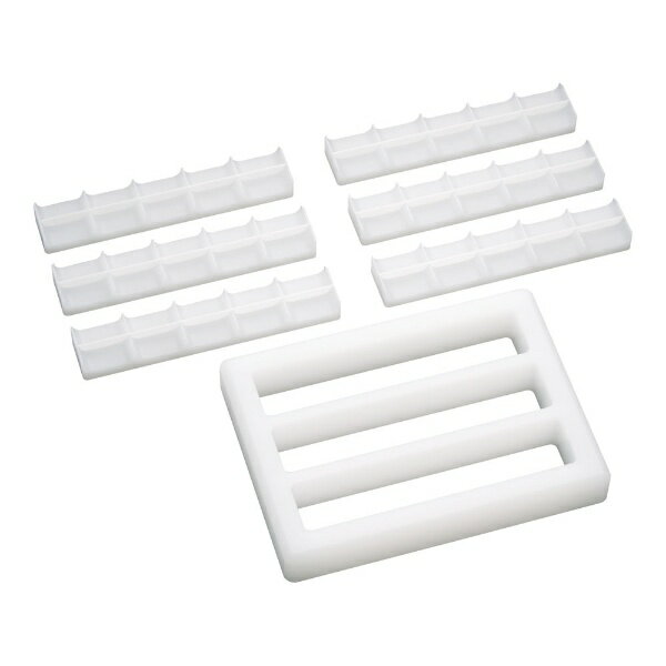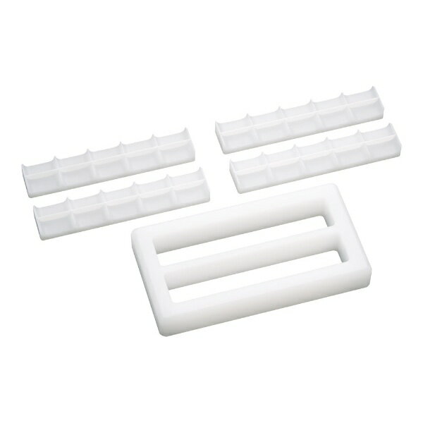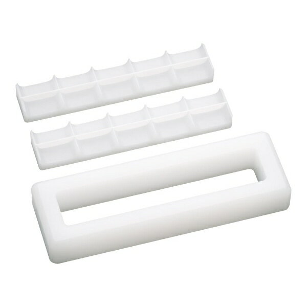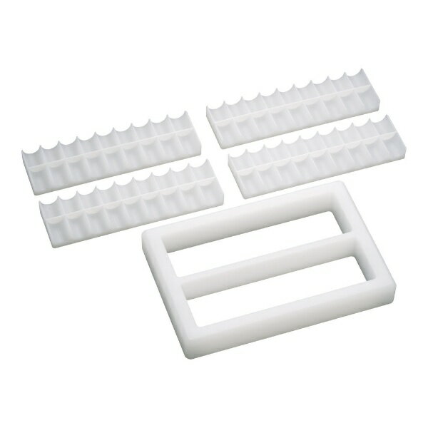 高圧ポリエチレン製のにぎり寿司用押し型【製品仕様】1度に作れるシャリ玉の数量(個):301個のシャリ玉のサイズ 幅×奥行×高さ(mm):55×23×201個のシャリ玉の重さ(g):約25※耐熱温度は80℃です。変形・変質の恐れがありますので、食器洗い乾燥機は使用しないでください。
