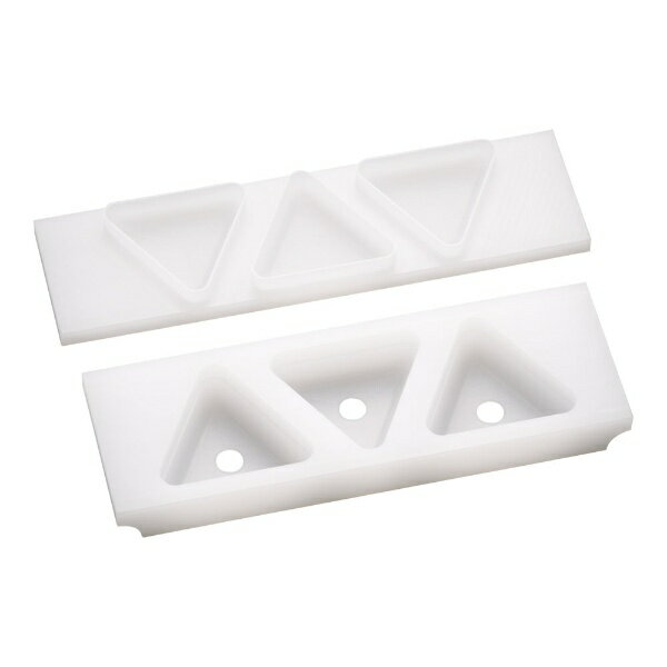 ポリエチレン製のおにぎり型【製品仕様】1度に作れるおにぎりの数量(個):31個のおにぎりのサイズ 幅×高さ×厚さ(mm):74×64×251個のおにぎりの重さ(g):約80※変形・変質の恐れがありますので、食器洗い乾燥機は使用しないでください。
