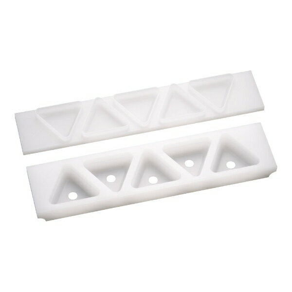 ポリエチレン製のおにぎり型【製品仕様】1度に作れるおにぎりの数量(個):51個のおにぎりのサイズ 幅×高さ×厚さ(mm):79×69×301個のおにぎりの重さ(g):約90※変形・変質の恐れがありますので、食器洗い乾燥機は使用しないでください。