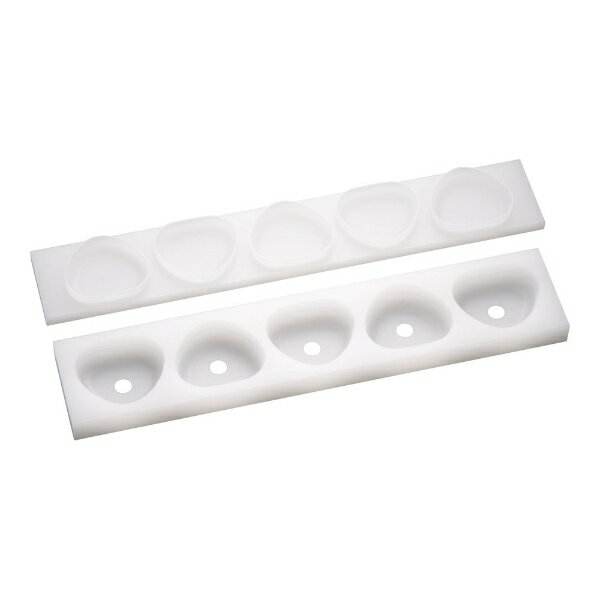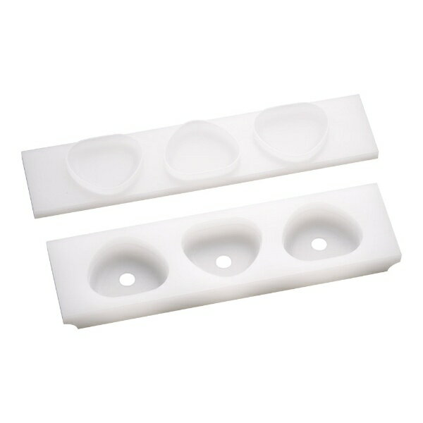 ポリエチレン製、俵形状のおにぎり型【製品仕様】1度に作れる俵型おにぎりの数量(個):181個の俵型おにぎりのサイズ 直径×幅(mm):φ28×401個のおにぎりの重さ(g):約25※変形・変質の恐れがありますので、食器洗い乾燥機は使用しないでください。