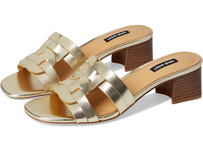 【送料無料】 ナインウェスト レディース パンプス シューズ Nine West Women's Gennie Slip-On Block Heel Dress Sandals Gold