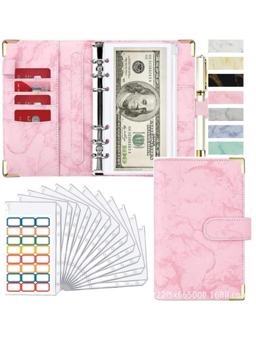 To all gennie 家計簿 ポーチ かわいい 家計管理 予算バインダー セット ファイル 仕分け 予算管理 12個のファイル付き A6サイズ 家計簿節約帳(ピンク)