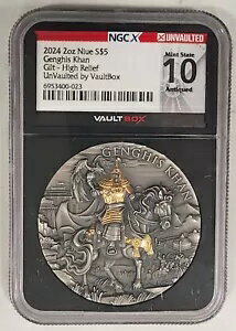 2024 2 オンス S$5 ジンギスカン ギルト ハイレリーフ ミント ステート 10 アンティーク仕上げ ゴールド