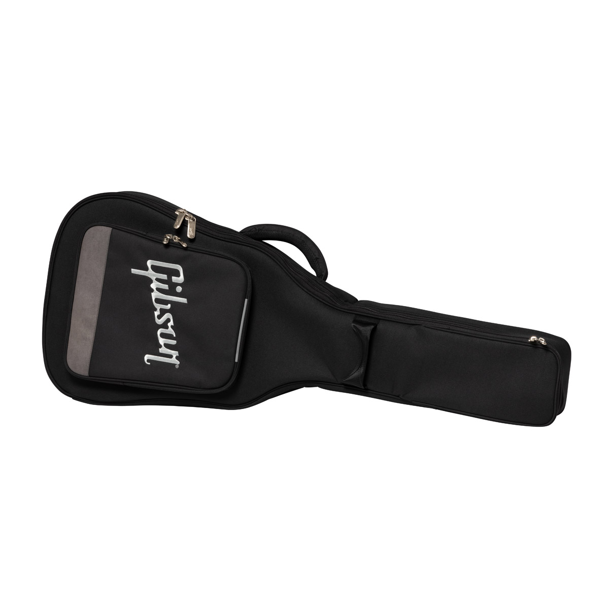 Gibson純正アコースティックギター用ギグバッグ Gibsonプレミアム・ギグバッグは、ポリエステル外装とネックピロー付きの生地内装で、楽器を安全に保管することができます。 前面に2つのポケットがあり、お気に入りのアクセサリーを一緒に持ち運ぶことも可能です。 デュアルバックパックストラップ機能。 主にSJ-200等のジャンボサイズのモデルにフィットします。※画像はサンプルです。 ※お持ちのギターのモデル、サイズをお確かめの上、お買い求めくださいませ。 ・Internal dimensions : 42.0” length, 13.0” upper body width, 17.0" lower body width, 5.0” depth ・Black polyester exterior with a black plush interior ・Padded handle for a comfortable grip ・Second grab handle on the rear for easy maneuverability ・Dual, concealable backpack straps