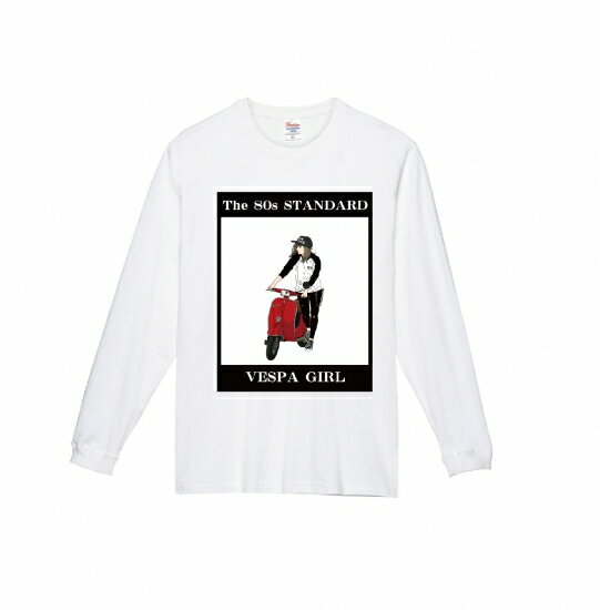 XLサイズ The 80s standard 長袖Tシャツ vespa girl ロンT ロングスリーブ ホワイト 白 ザ エイティーズ バイク ベスパ デザイン 7.4オンス メンズ レディース ペアに
