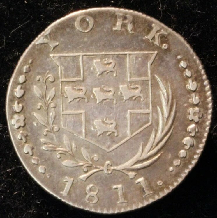 1811年 イギリス / ヨーク / 6ペンス / 銀貨トークン / 「牛と理髪店」