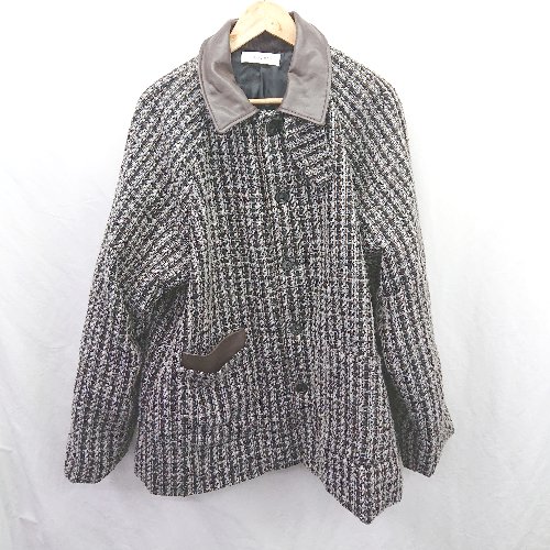 ■ ⊇ selle glant セレグランテ カジュアル系 長袖 スタンドネックツイードジャケット サイズL ブラウン系 レディース E 【中古】