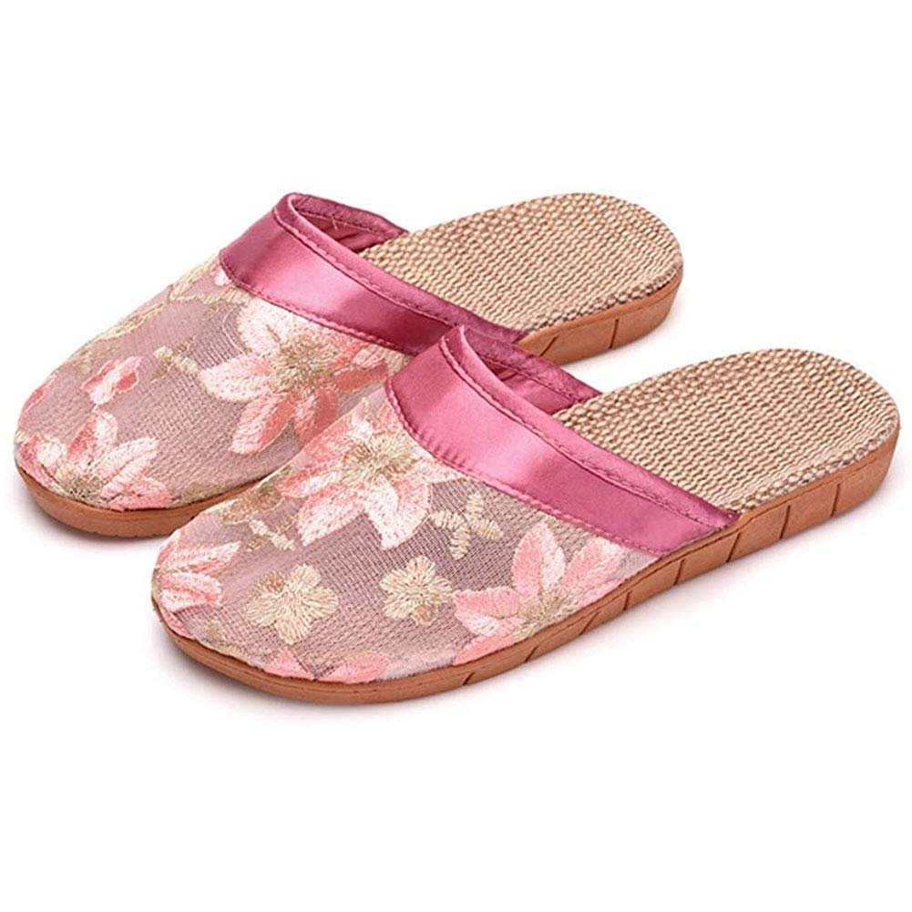 [wendetaimei] レディース メンズ ルームシューズ 夏春 スリッパ 室内履き 静音で軽量 麻 可愛い 滑り止め 来客用 部屋用 ギフト (ピンク, measurement_23_point_5_centimeters)