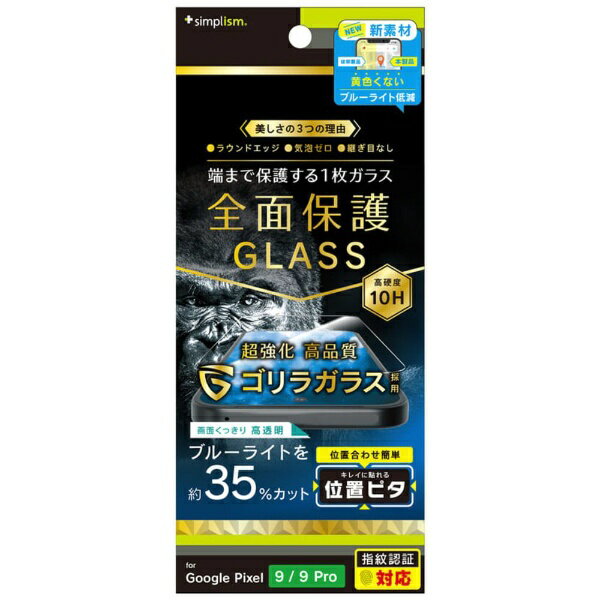 トリニティ|Trinity Google Pixel 9 / 9 Pro フルカバー ゴリラガラス 黄色くないブルーライト低減 画面保護強化ガラス 位置ピタ 光沢 TR-PX249-GLI-GOB3CC